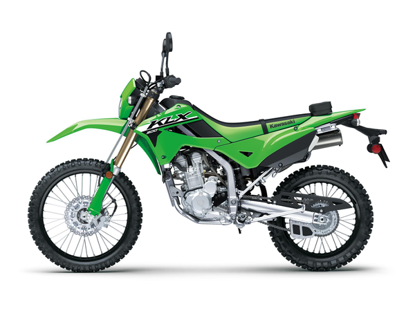 First arriving in 2021, Kawasaki’s KLX300 dual-purpose is ideal for introducing riders to the joys of motorcycle riding, whether city riding or light touring. Enduro-racer roots give the this motorcycle a strong base for off-road riding potential: featuring a responsive engine in a lightweight, rider-friendly chassis with high-grade suspension, enabling them to deliver an exciting experience on- or off-road. With its enduro racer-based ø43 mm inverted fork and fully adjustable rear shock complemented by 21” front and 18” rear spoke wheels with off-road tyres, the KLX300 is equally at home navigating city traffic or traversing a forest trail.