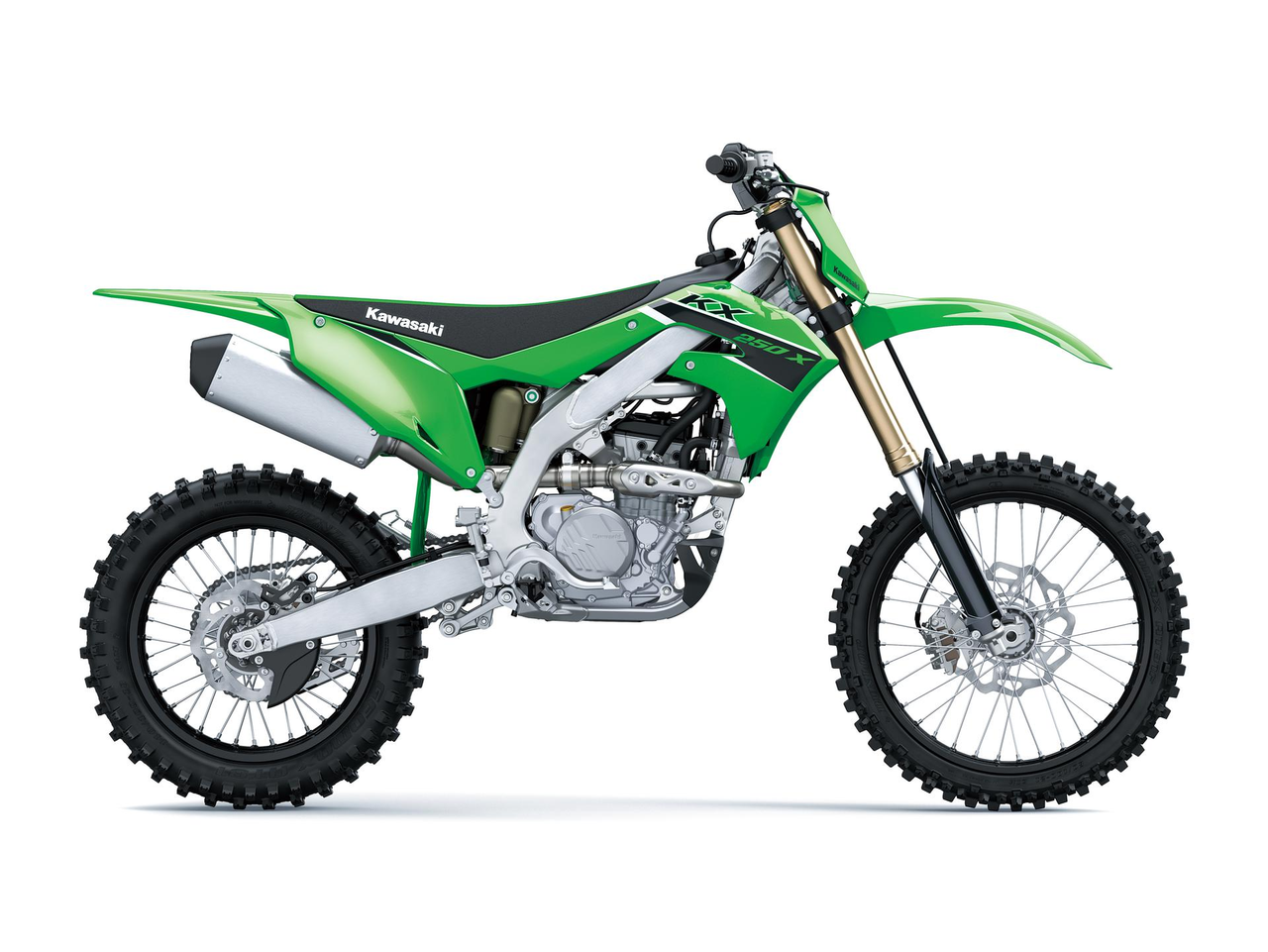 KX factory-style skid plate and a convenient side stand are both standard equipment.