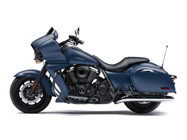 Muscular front cowling and wind deflector, key bagger styling elements, offer protection from the wind and weather. Mounting the cowling to the frame rather than the handlebars contributes to light handling and minimises effect of wind buffeting.
